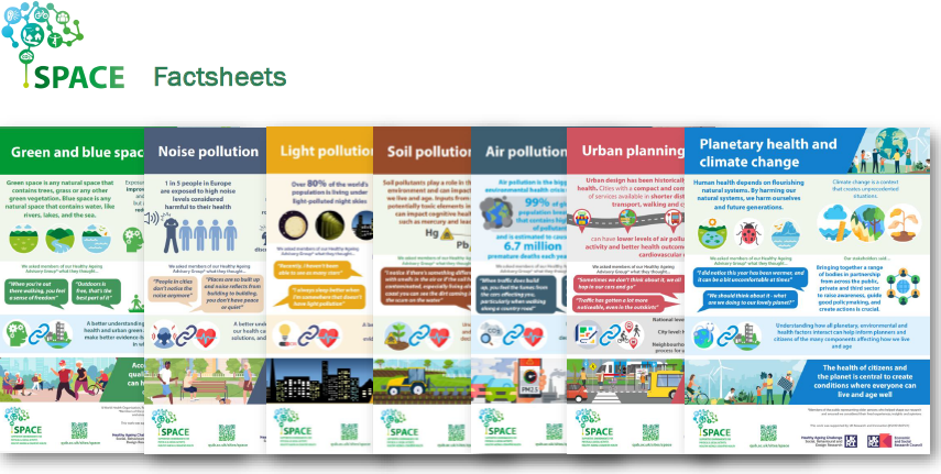 This webinar launched a series of factsheets and videos which showcase the impact of pollution in Noise, Light, Air and Soil pollution on brain health and healthy ageing. Factsheet and videos also explore topics on Green and Blue Space, Urban Planning, Planetary Health and Climate Change. These resources include the views members of the Older People’s Advisory Board and partner organisations. Providing inspiration for sectors to consider and embed knowledge of risk factors of dementia and cognitive decline within organisational policy and take creative actions to support the design of places for future generations.