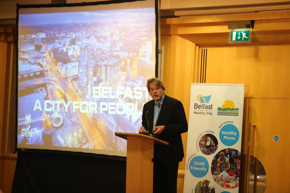 Reuniting Planning and Health shared experience and expertise from leaders in the field of reuniting planning, place making and health, introducing fresh thinking to inform new ways of working in the context of local government reform. The event was opened by Belfast Lord Mayor, Cllr Nichola Mallon and addressed by Health Minister, Jim Wells, MLA. The keynote speaker was Riccardo Marini of the world renowned Gehl Architects. Other speakers at the conference included Gabriel Scally, World Health Organization, Hugh Ellis, Town and Country Planning Association and Suzanne Wylie, Chief Executive of Belfast City Council.